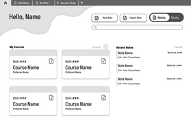 I opted for a toggle for the different Note and Study sides because the web app felt split, and there wasn’t enough room in one dashboard for each side.